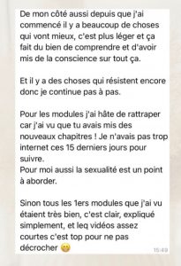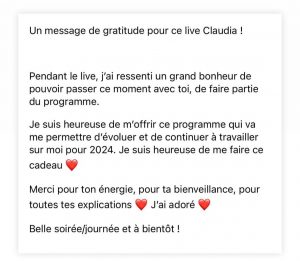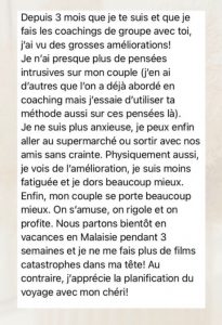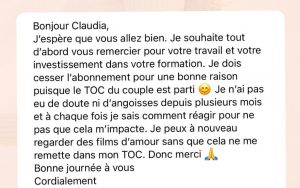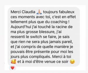 Je vis ce que j’enseigne dans mon corps, dans ma relation, dans ma vie quotidienne ce qui m’a permis de guérir des traumas complexes et de vivre la plus belle et épanouie relation de ma vie avec un homme sain, gentil et émotionnellement disponible.